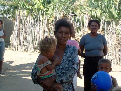 Buschi und Miriam     Fotos: Besuch bei Estenio (der junge Mann, der neben Buschi sitzt), arme Dorfbewohnerin, unser Stundenhotel, die Tochter unsers Bauleiters spielt Blume |