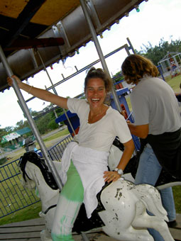 Karussell-Pferden, kamen lauter Kinder die mitfahren wollten. Wir hätten