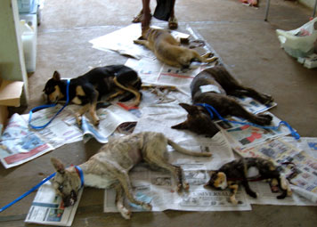 die ein- bis zweimal im Jahr zum operieren herkommen, alle kastrieren lassen.